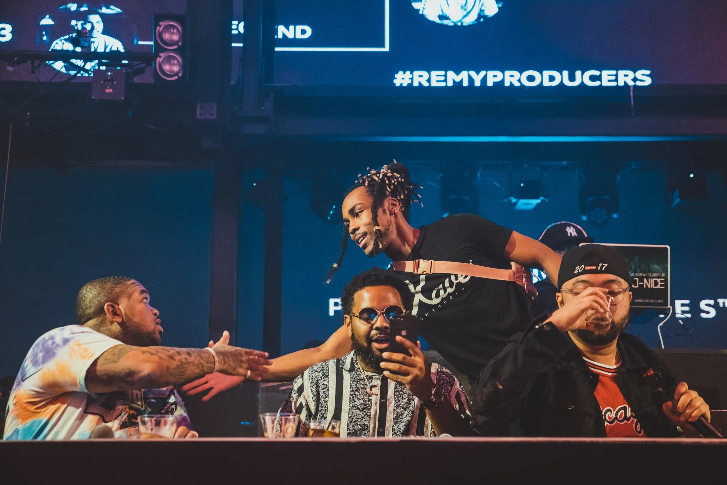 XAVIER (top) during Remy Martin’s Producer Series Season 5 in Las Vegas, hosted by Grammy-winning record producer DJ MUSTARD (left) and BIG SEAN (middle).